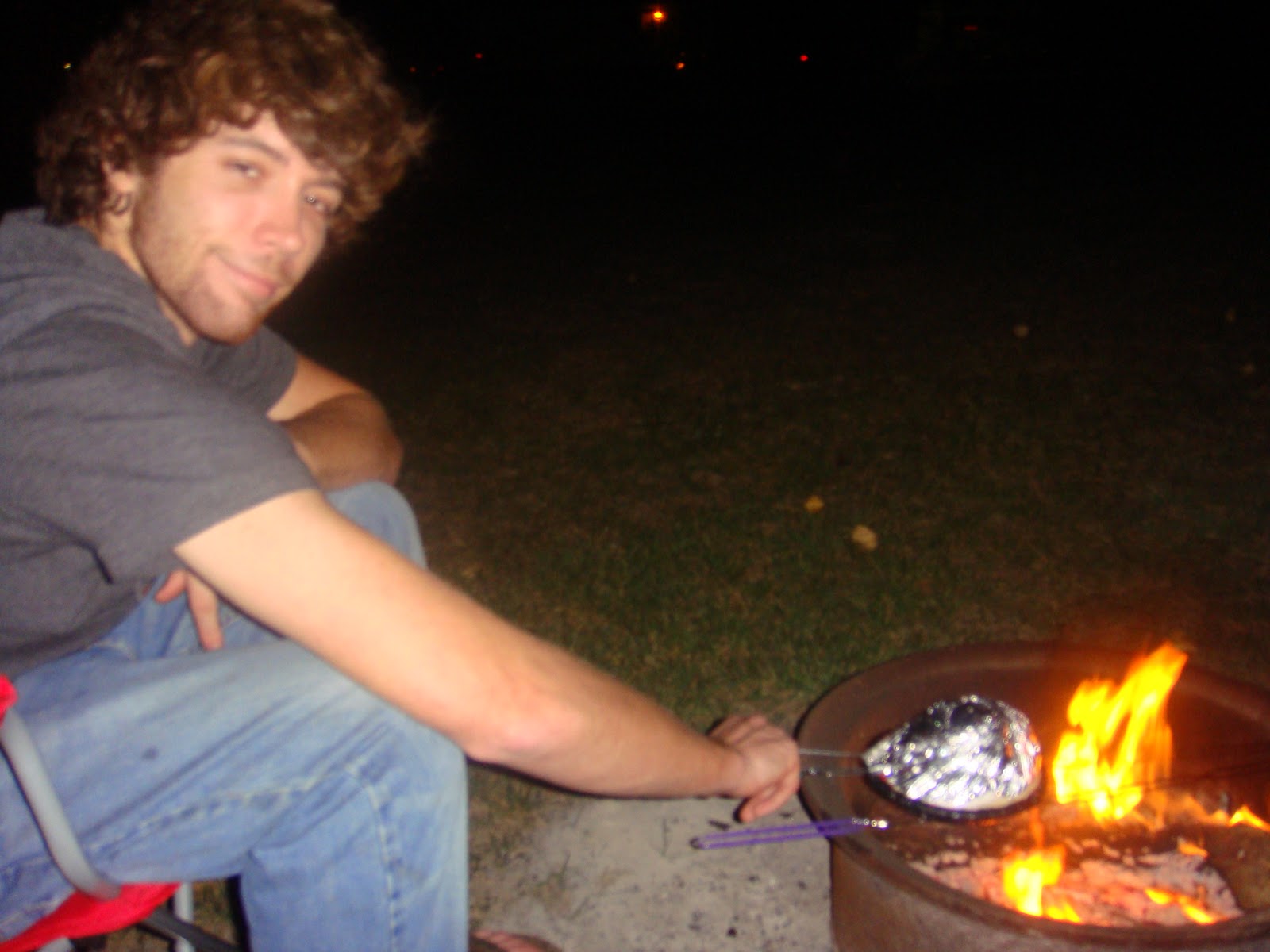 The next chance we had to spend time together was for my birthday. Michael had told me that he had a surprise for me, but I wasn't sure if the surprise was the date or a gift, so I didn't have a clue about what it could be. When I got home from work, I stepped out of my car and noticed Michael sitting in his car, parked next to me. I saw some of my sweats in the backseat, and instead of the obvious, I thought to myself "has it really been so long since the last time I did laundry that he's taking it to a laundromat?!" Then I noticed Gizmo jumping around in the front seat and Michael signaled me to get into the car. I was thrilled when we arrived at a camping ground, after about a 30 min. drive! Michael had bought us a new tent and everything we would need for camping. He even brought dinner, which consisted of hotsogs, brautwurst, chips, pickles, and s'mores for dessert. He even brought his laptop to watch a DVD, and beef jerky and jiffypop to cook over the fire for a snack. Although we were exhausted and ended up falling asleep around 11pm, and we had to get up at 7am so Michael could resume his studying, we still had such a perfect evening together while it lasted. It was the perfect birthday surprise!